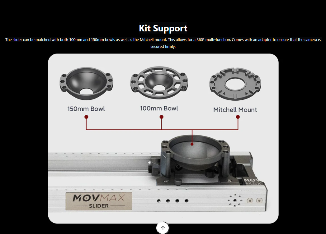 The MOVMAX Slider is a professional-grade cinematography slider designed for smooth, stable, and precise camera movement. Built from high-strength 7-series aluminium alloy, it supports 100mm and 150mm bowl mounts as well as Mitchell mounts, making it adaptable to a wide range of setups. Available in multiple lengths, it offers quiet operation, side expansion…