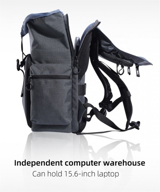 - * The two upper and lower EVA compression moulded shells on the front panel are strong, durable and impact resistant. The upper and lower compartments are divided into bins, the lower bin is the camera bin, the upper bin is the item bin (clothes, drones, etc.), and the top bin is the battery, memory card, and data cable bin. The upper and lower warehouses can be separated or communicated with each other, and the lower warehouse equipment warehouse can be assembled by DIY.