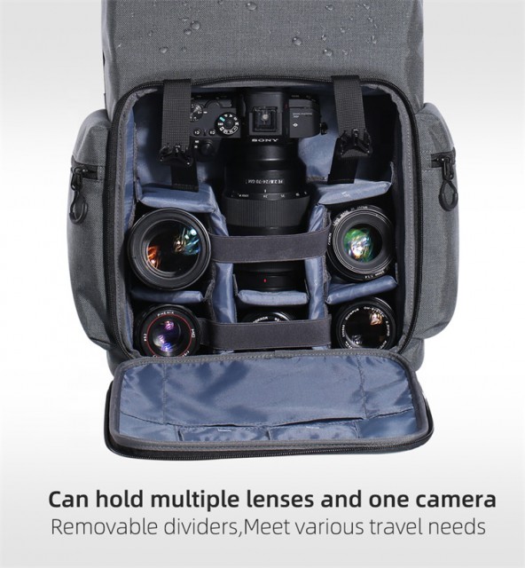 - * As a professional outdoor camera bag, the capacity is 25L, the upper and lower storage compartments, one camera with multiple lenses, front opening.