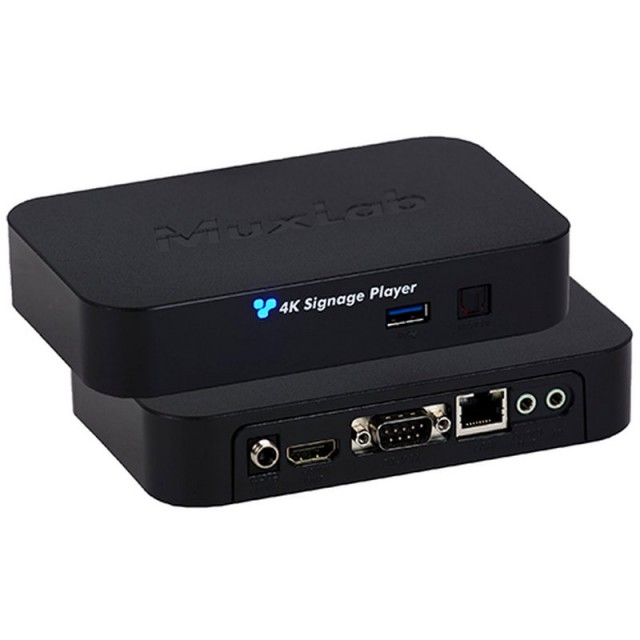 DigiSign is the CMS (Content Management System) designed by MuxLab to create and manage weekly schedules of digital signage content running autonomously on the Digital Signage Media Player. It allows the user to create multi-view layouts of virtual screens and assign playlists to each window. Playlists may contain video, audio and image files, and the system also supports text banners and logos. DigiSign is available for iOS and Android, and a Windows version is also available. The Windows version is recommended for creating the multi-view layouts, playlists, and schedules, and all versions may be used to manage the selection and activation of weekly schedules.