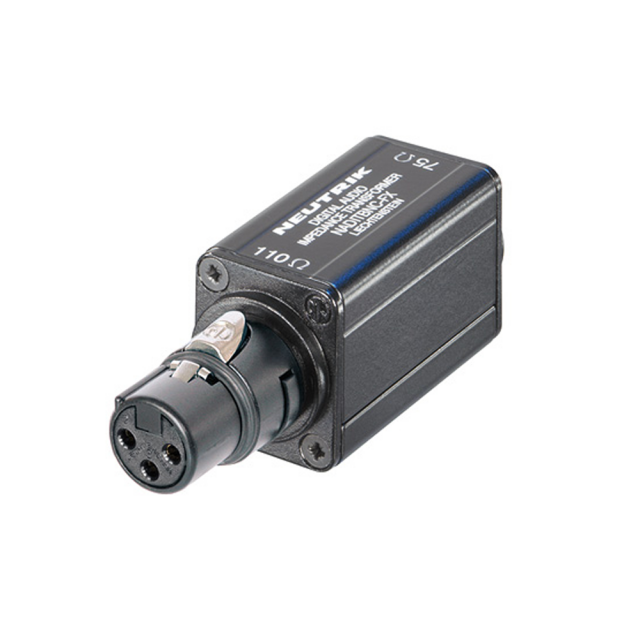 Impedančný transformátor - adaptér, panelový konektor XLR samica 110 Ω vstup - samica BNC 75 Ω výstup.