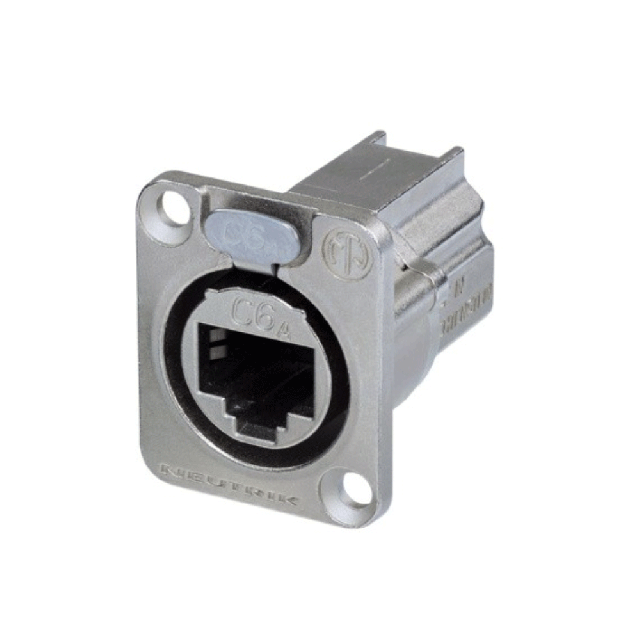 Neutrik NE8FDP - RJ45 feedthrough receptacle, D-shape metal flange with the latch lock. Mounting screws included.