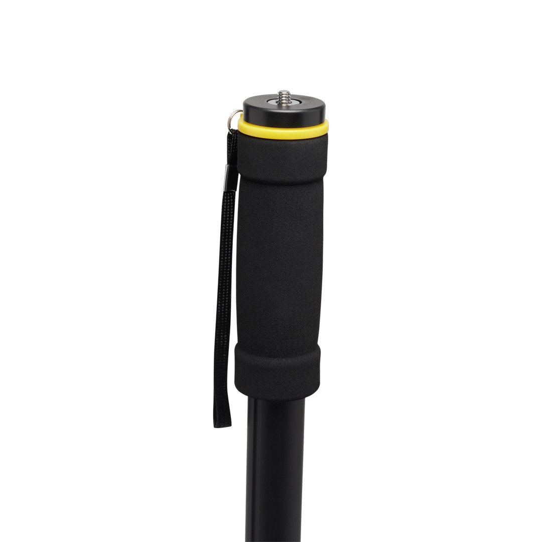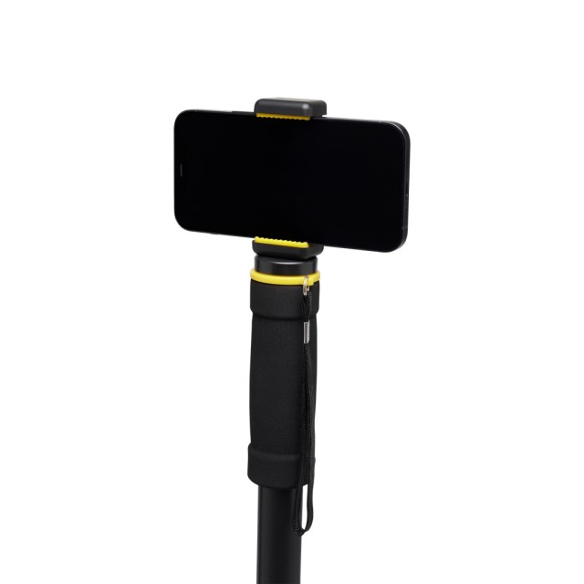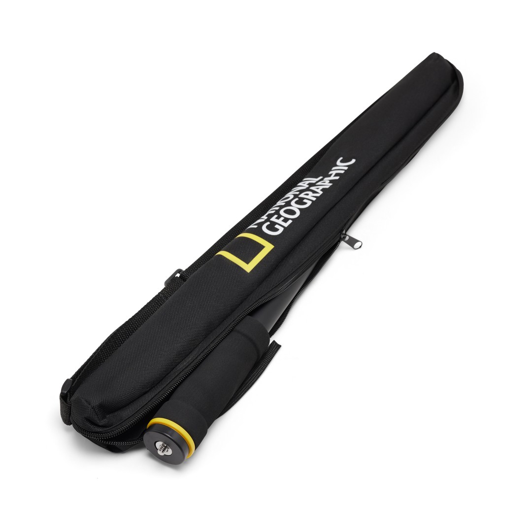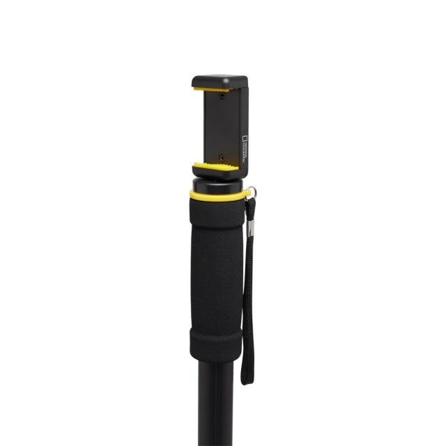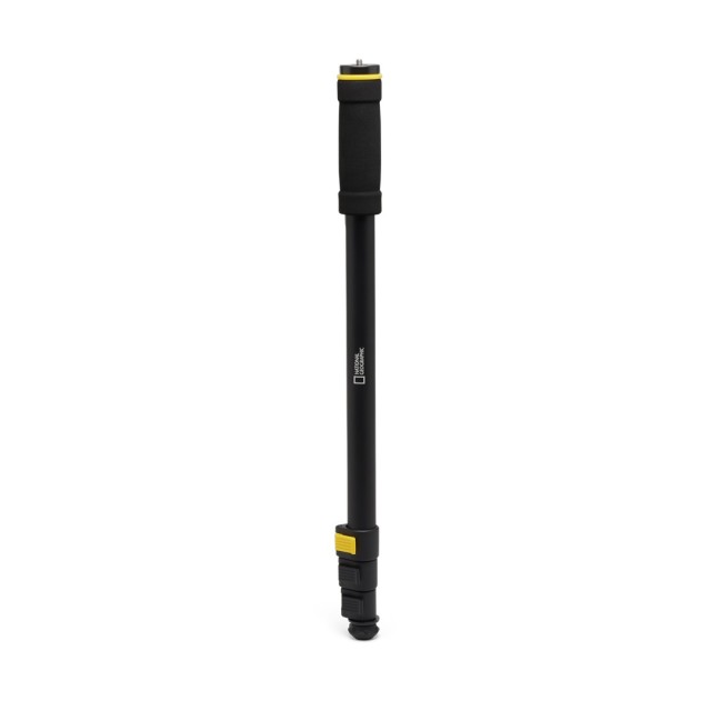 The National Geographic 4-section monopod is lightweight, compact, and ideal for achieving stable photos or videos in environments where a tripod would not be practical—such as in crowds, at festivals, in tight corners, or on uneven terrain. It features a wrist strap for added security, a soft foam grip for extra comfort, and a removable rubber foot that includes a spike for better stability on almost any surface. The National Geographic Photo Monopod also comes with a smartphone holder and a carrying case. Great for DSLRs, mirrorless cameras, compact or bridge systems weighing up to 3 kg and smartphones up to 8.4 cm wide. Weighing only 373 g, the monopod can be extended to an impressive height of 1.7 meters.