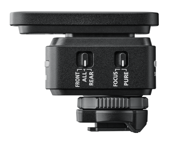 The microphone is powered by ZR and supports professional 32-bit floating point audio recording. Select the microphone mode that suits your creative intentions—PURE mode for recording ambient sound "as is" and FOCUS mode, tailored to human voices.* For greater versatility, three directional pickup patterns are available—front, rear, or omnidirectional. The ME-D10 features a built-in shock mount and a large front indicator light that illuminates during video recording. The microphone comes with a special windscreen, digital stand cover, and case.