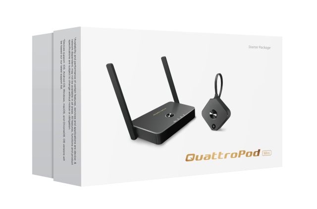 With low-latency, high-quality video output, multi-user collaboration, and secure wireless transmission, the QuattroPod Mini 1T1R is perfect for boardrooms, classrooms, and conference halls looking for a hassle-free presentation system.