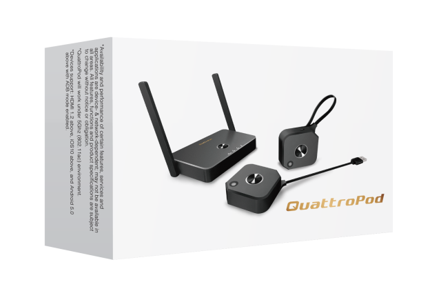 Perfect for business meetings, hybrid learning, and conference setups, the QuattroPod Mini 2T1R streamlines presentations with hassle-free, high-resolution wireless sharing, secure transmission, and multi-user functionality.