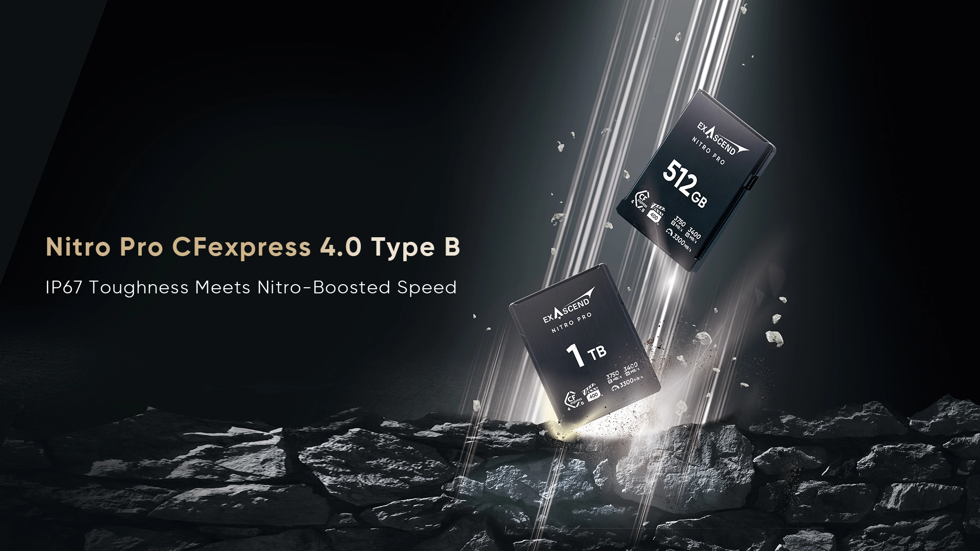 Introducing the flagship Nitro Pro CFexpress 4.0 Type B Card, available in 512 GB and 1 TB. Designed to exceed the demands of professional creators, it sets new standards in speed, efficiency, and durability. Engineered for challenging environments, it ensures uncompromising performance for capturing critical moments with ease.