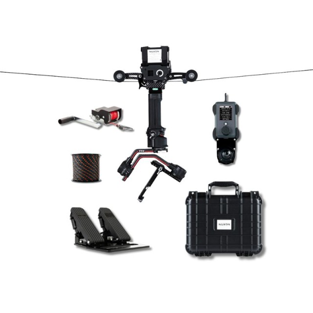 This ultimate kit includes an anchoring and tensioning kit for quick setup, a 50m polyester rope, and a flight case for transport and storage. For enhanced control, it comes with a joystick extension dock and a pedal control system, allowing a single operator to manage both the cablecam’s movement and the camera stabilizer simultaneously.