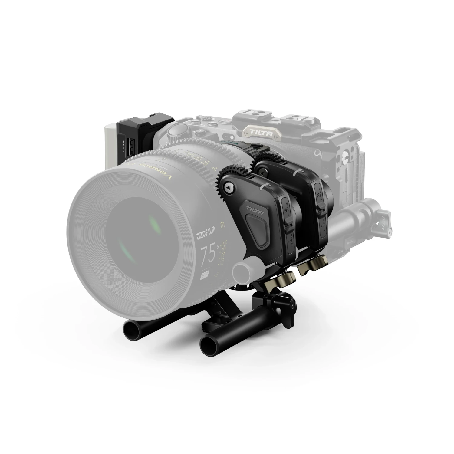 A key feature is the instant AF to MF override, accessible via the MF button on compatible Nucleus-M II FIZ hand units. This allows cinematographers to switch to manual focus pulls for creative racks or precise adjustments, then instantly return to autofocus mode. The dual motor configuration in this kit extends functionality, enabling electronic iris control on the second motor when paired with the camera system.
