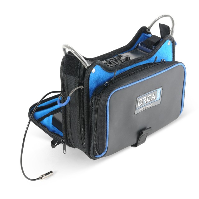 The Orca OR-272 Low Profile Mixer Bag is part of Orca’s low profile audio mixer bag collection (OR-268, 270, and 272). The bag was designed to hold, protect, and transport small mixers such as the Zoom F4/F8n, the Zaxcom Nova, the Sound Devices MixPre-10 or similarly sized mixers, together with the MX-LMount battery sled. The OR-272 is ideal for a simple multi-channel recording.