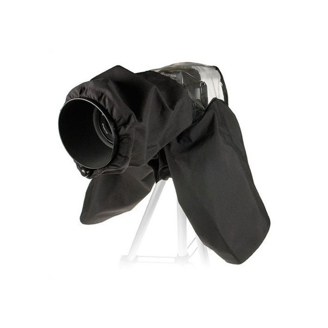 Raincover designed for wide range of DSLR cameras with telephoto lens.