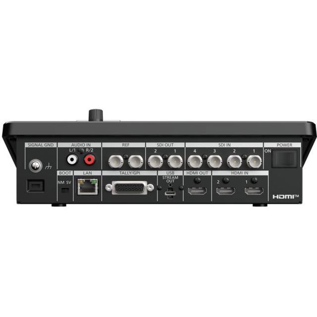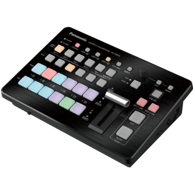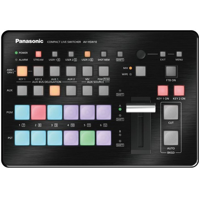 The AV-HSW10 supports high-end production, including 10bit processing for broadcast-quality video. In addition, the popular design of its predecessor, the AW-HS50, has been enhanced for even greater operability and robustness. User-friendly buttons on the main unit, a handy T-shaped fader, and intuitive on-screen displays ensure easy, error-free operation - vital for live-venue production. Furthermore, the AV-HSW10 will be compatible with the Panasonic Software Control Panel for viewing video and images in applications, as well as for easy, direct switching from a PC via a network, allowing multiple people to work simultaneously for extra-efficient on-site operation.