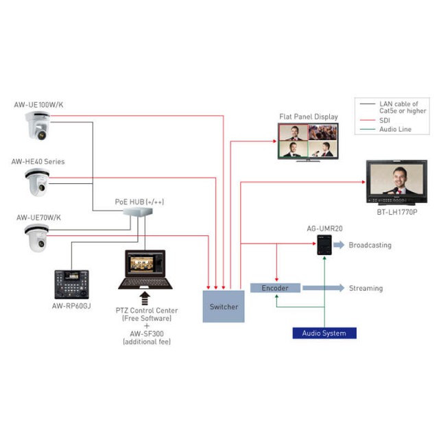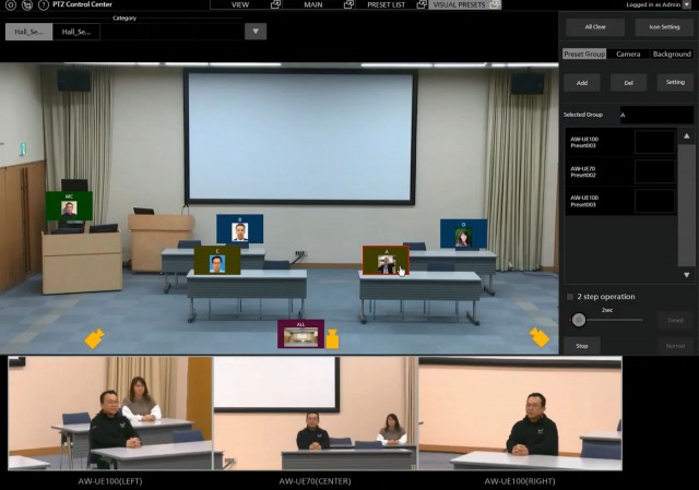 Visual Preset Software Key, AW-SF300 is an optional accessory (additional fee applies) for PTZ Control Center, freeware for use with Panasonic PTZ Cameras. The addition of the AW-SF300 enables the management and control of PTZ Camera presets through a GUI screen incorporating photos and layout diagrams assigned by the user. Users can recall presets for multiple PTZ Cameras at once and switch the cameras directed toward a subject simply by clicking on subject icons on the GUI screen. Operation using a PC mouse and GUI screen provides ease of use for users who are unfamiliar with the operation of video equipment.
