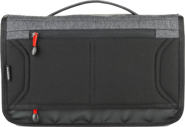 The back of the bag includes a zippered pocket at the bottom that can be opened and the trolley handle can be pulled through, which is handy when travelling