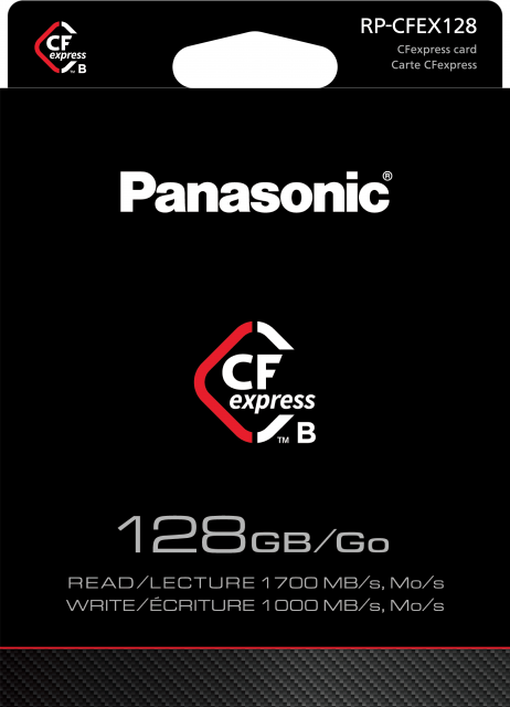 Panasonic's professional CFexpress 128GB card with high read/write speeds designed for long term use and secure recording.