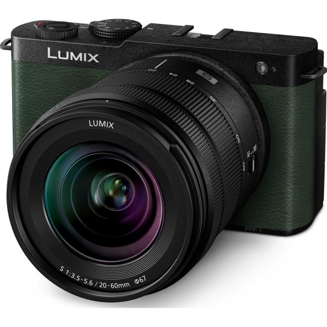 The LUMIX S9 is the ultra-compact full-frame mirrorless camera in the LUMIX S series, offered in attractive colour options (Jet Black, Crimson Red, Dark Olive and Classical Blue) and featuring a powerful 24.2MP FF sensor, PDAF focusing and Active I.S image stabilisation. The LUMIX S9 is the perfect tool for content creators who want to stand out on social media! The LUMIX S 20-60mm f/3.5-5.6 lens and dark green body kit. On sale from 6/2024.