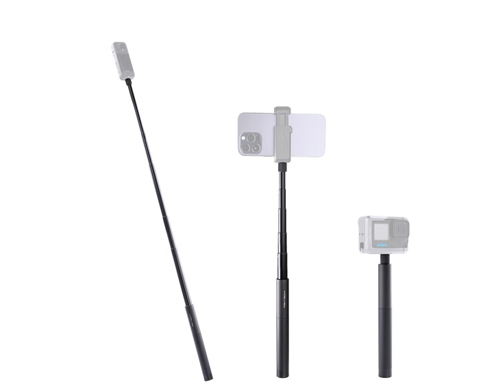 Notably, when paired with Insta360 panoramic cameras, the selfie stick becomes invisible in footage, making it ideal for immersive video capture. The stick locks securely via a twist-lock mechanism across its five extendable sections, ensuring stability during use. With a load capacity of 12.3 oz (349 g), it can comfortably support most lightweight cameras and accessories.