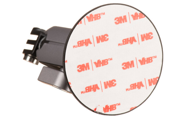 The base uses high-strength 3M VHB adhesive, providing excellent adhesion and durability in demanding outdoor environments. The mount includes both a removable 3-prong action camera adapter and a 1/4"-20 threaded stud, making it compatible with a wide range of action cameras and compact devices weighing up to 3.3 lb.