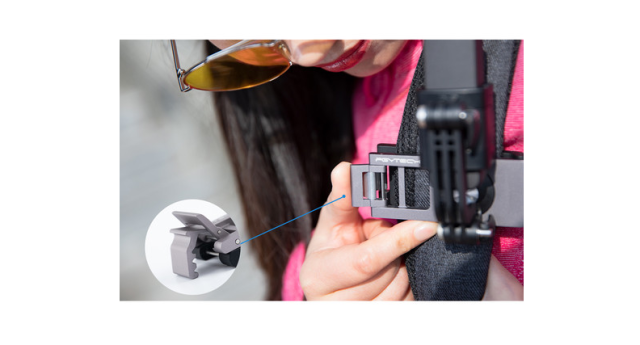 The PGYTECH Osmo Pocket & Action Camera Backpack Strap Clip is a versatile accessory designed for adventurers, hikers, and travelers who want hands-free access to their DJI Osmo Pocket or action cameras. Constructed from sturdy aluminum, PA, and silica gel, this clip securely fastens to backpack straps up to 0.4" (1 cm) thick and 2.5" (6.5 cm) wide. Its locking mechanism ensures stability during movement, while the three-prong mount on the outer surface allows attachment of the DJI Osmo Pocket Accessory Mount or most action cameras for POV shooting. Compact and lightweight at only 2.8 oz (80 g), it is ideal for capturing dynamic footage without carrying the camera in your hands.