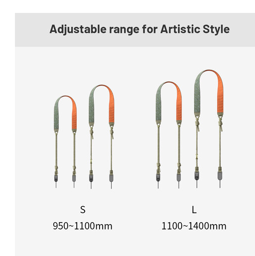 The braided Dyneema lanyard provides exceptional strength, supporting up to 198 lbs (90 kg), and features quick bead connectors for rapid camera detachment. The strap’s adjustable length ranges from 39" to 55" (99–140 cm), making it versatile for different body types and carrying preferences. Its slim 0.5" (1.3 cm) profile ensures mobility without bulk, while the stylish night black finish complements any camera setup.