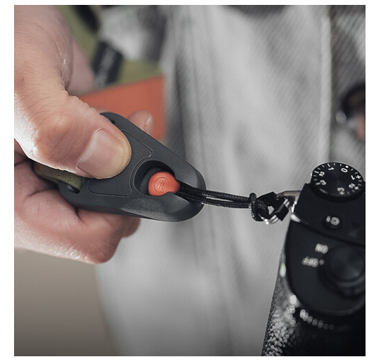 An anodized aluminum quick adjuster allows you to easily tighten or loosen the strap with one hand, ensuring a secure yet comfortable fit around your wrist. The strap attaches to your camera via a strong loop connection and supports loads up to 198.4 lb (90 kg) for added peace of mind. When not attached to a camera, a hidden magnetic clasp enables the strap to be worn conveniently as a bracelet.