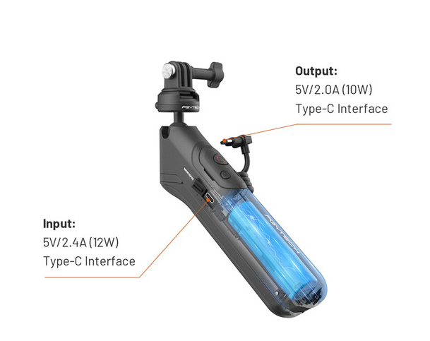 The PGYTECH P-GM-149 CapLock MantisPod Power Grip (GoPro Edition) is designed for action camera enthusiasts and smartphone users who want flexibility, power, and ease of use in one compact device. Compatible with GoPro HERO5 through HERO13 and USB-C smartphones (Android, Harmony OS, iOS), this grip enables worry-free shooting with simultaneous charging thanks to its built-in 21700 lithium battery (5000mAh). The battery supports fast 12W input and 10W output, offering approximately 25 hours of use and fully recharging in around an hour.