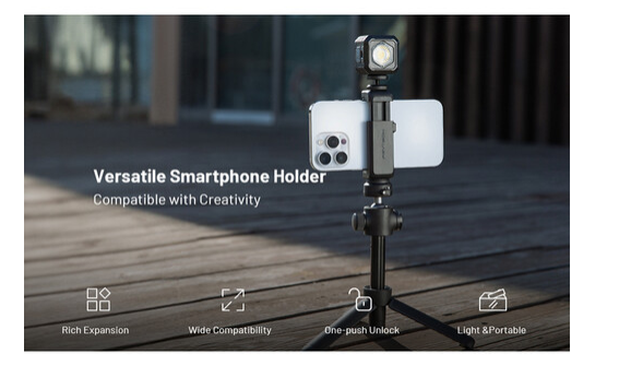 The Versatile Smartphone Holder fits phones 2.4 to 3.6" wide, has silicone gaskets to protect your device, and includes a cold shoe mount for accessories. Its one-push unlock and 1/4"-20 female thread allow for quick adjustments and tripod compatibility. With premium construction from aluminum, steel, and durable plastics, this combo ensures both comfort and reliability for on-the-go filming.