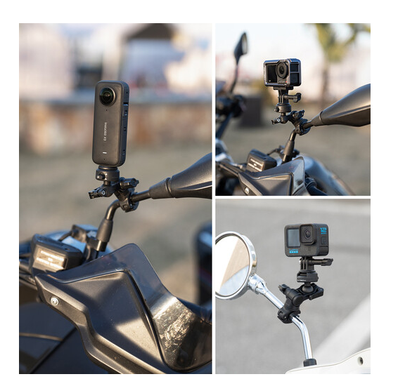 Capture thrilling footage with the PGYTECH P-GM-170 CapLock Rearview Mirror Mount, designed for riders and adventurers seeking dynamic camera angles. Its patented rosette structure and innovative ball head design allow 360° rotation and 180° tilt, giving complete pivot flexibility, all secured with a single wingnut. The mount includes clamp sleeves for 6, 8, 10, 12, and 14mm tubes, ensuring a snug fit on a variety of rearview mirrors or handlebars.