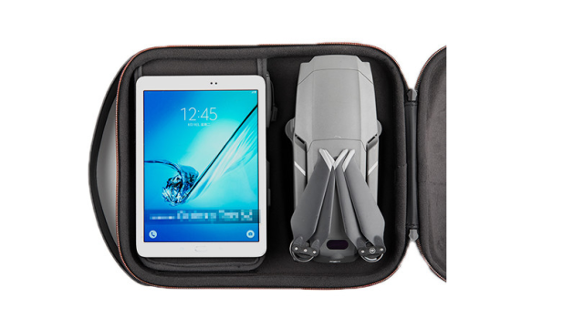 For added versatility, the compartment can accommodate a 7.9” tablet when the remote controller’s thumb sticks are removed. The dual zipper closure and IP34 water- and dust-resistant rating ensure your equipment stays protected in various environments. The case also features a carry handle and removable shoulder strap, making it easy to transport whether you’re traveling locally or taking your drone on the go.