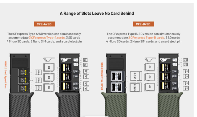 Stores up to 12 cards: 3 CFexpress Type A, 3 SD, 4 microSD, 2 Nano SIM