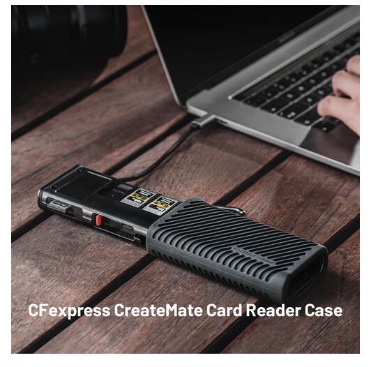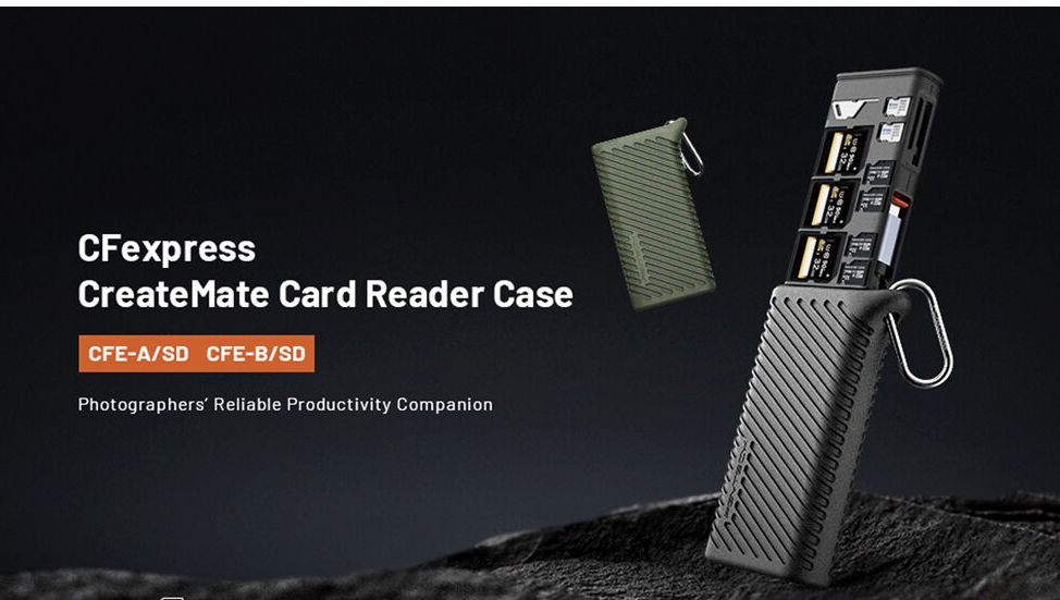 The PGYTECH P-GM-168 CreateMate CFexpress Type A/SD Card Reader Case combines fast card reading and secure storage for professional photographers and videographers. Designed for CFexpress Type A and UHS-II SD cards, it features a dual card slot system capable of transferring data at speeds up to 1000 MB/s for CFexpress Type A and 312 MB/s for SD/microSD cards. The case stores up to 12 cards, including three CFexpress Type A, three SD, four microSD, and two nano SIM cards, and comes with a microSD to SD adapter and a multifunctional eject pin.
