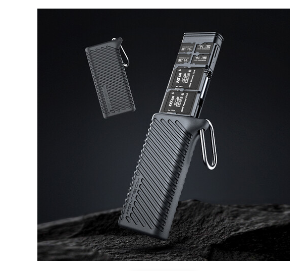Holds 4 SD cards, 4 microSD cards, and 2 nano SIM cards