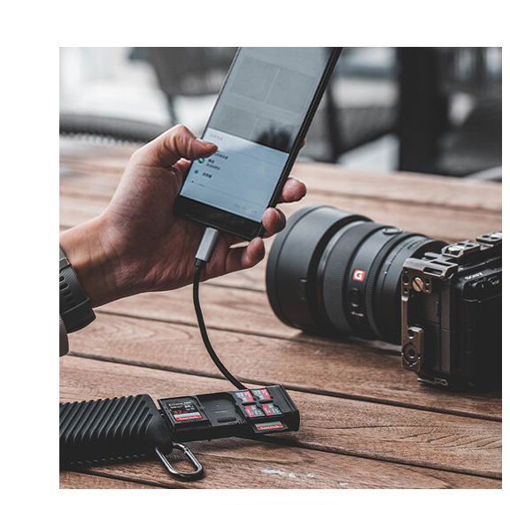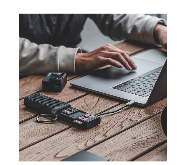 The PGYTECH P-GM-163 Classic Black CreateMate High-Speed Card Reader Case combines a robust card reader and storage solution. With slots for SD, microSD, and nano SIM cards, it’s IP54 rated and features fast USB-C data transfer up to 312 MB/s, making it ideal for photographers and content creators on the go.
