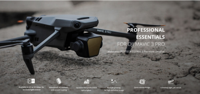 Enhance your DJI Mavic 3 Pro footage with the PGYTECH ND/PL Filter 4-Pack. Including ND8/PL, ND16/PL, ND32/PL, and ND64/PL filters, these hybrid ND and polarizer filters reduce light, minimize glare, and protect against reflections. Made with Japanese AGC optical glass and lightweight aluminum frames, they are waterproof, oilproof, scratch-resistant, and quick-release compatible.