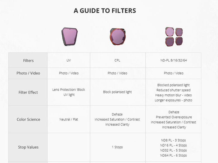 ND/PL Stops: ND8/PL – 3 stops, ND16/PL – 4 stops, ND32/PL – 5 stops, ND64/PL – 6 stops
