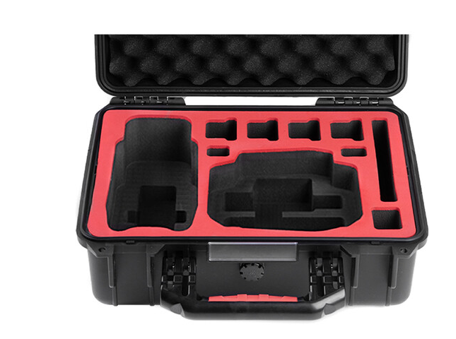 The case features precut foam inserts with custom compartments to securely hold the drone, remote controller, batteries, and other essential accessories. The padded interior lid provides extra cushioning for sensitive equipment. An integrated pressure release valve ensures safe air pressure adjustments during air travel. The robust latch closure can accommodate a padlock (not included) for added security. Lightweight yet durable, this hard-shell case is built to withstand demanding conditions while keeping your gear organized and protected.