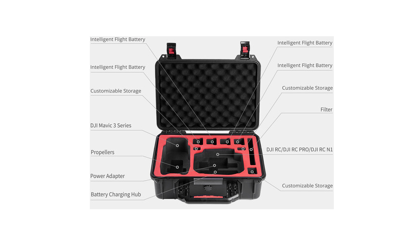 The PGYTECH P-43A-010 Hard-Shell Carrying Case is a rugged, IP67-rated protective case for DJI Mavic 3 drones. Featuring custom foam compartments, padded interiors, and a durable, dust- and waterproof design, it safely stores your drone, remote, batteries, and accessories for secure transport anywhere.