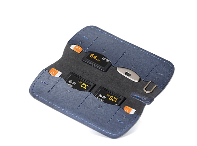 The PGYTECH P-CB-036 Memory Card Wallet is a compact, stylish solution for safely carrying up to 3 SD and 3 microSD cards. Featuring a leather exterior with microfiber lining, magnetic snap closure, and included SIM tray pin and QR wrench, this wallet keeps your essential storage media organized and protected on the go.