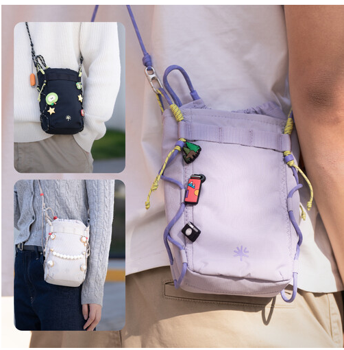 The padded interior liner cushions your gear, while the drawstring closure allows quick access on the move. A built-in quick-clean lens wipe helps keep camera lenses and phone screens spotless, and the concealed AirTag pocket adds peace of mind when traveling. Designed with personality in mind, the bag also supports DIY badges and Crocs-style accessories, letting you customize your look. Lightweight and comfortable, the adjustable shoulder strap makes it an ideal companion for daily use, casual outings, or content creation sessions.