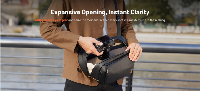 Comfort is ensured with a wide EVA-padded shoulder strap featuring a quick-adjust buckle and rotating strap ends for natural movement. The sling also includes bottom straps for a tripod, a water bottle pocket, and thoughtful security features such as anti-theft YKK zippers, an AirTag pocket, and a zipper anti-theft loop. Built from splash-resistant fabric, the OneGo Solo V2 is a reliable and stylish everyday carry for photographers and creators.