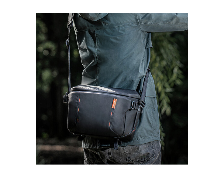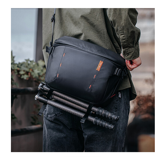 Comfort and convenience are enhanced with a wide, breathable padded shoulder strap, a bottom tripod strap, and webbing for attaching camera clips or carabiners. Built from water-resistant materials with YKK zippers, the OneMo Sling also includes a hidden AirTag pocket for added security—making it an excellent companion for travel, urban shooting, or daily adventures.