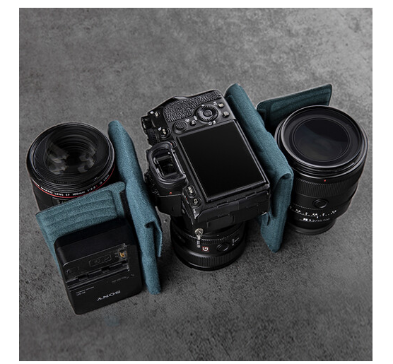 Designed for adaptability, the middle section can be unzipped and expanded, increasing capacity from 11L to 13.5L. This expanded space can hold a DSLR with a 70–200mm lens mounted vertically, two additional lenses, and up to a 14" MacBook Pro. Inside, adjustable padded dividers keep gear protected, while a battery storage pocket with power indicator helps you manage charged and depleted batteries efficiently.