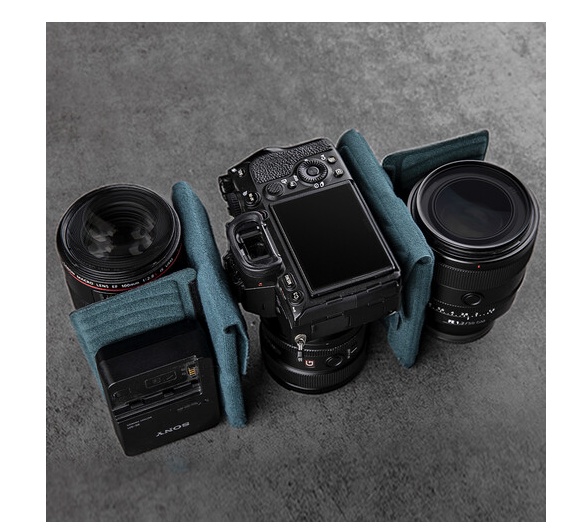 By unzipping the middle section, the capacity expands from 11L to 13.5L, accommodating a camera with a 70-200mm lens, two extra lenses, and a 14" MacBook Pro. The bottom strap holds a tripod, and additional webbing allows for attaching camera clips or carabiners. A battery storage/power indicator pocket ensures your devices remain charged, while the hidden AirTag pocket adds anti-theft protection. The thick, breathable, padded shoulder strap enhances comfort during extended use, and water-resistant materials protect your gear from unexpected weather.