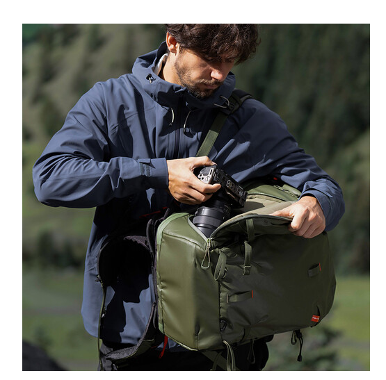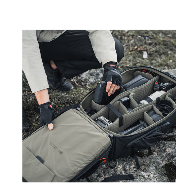 The PGYTECH P-CB-196 OnePro Focux Backpack is the ultimate pack for photographers, travelers, and outdoor adventurers. With a 25L capacity, it can comfortably hold two DSLR or mirrorless camera bodies, nine lenses, and even a DJI drone, along with laptops, tablets, chargers, and accessories. Its expandable front compartment, multiple pockets, and attachment points allow for versatile storage of camera gear, camping equipment, or everyday essentials.