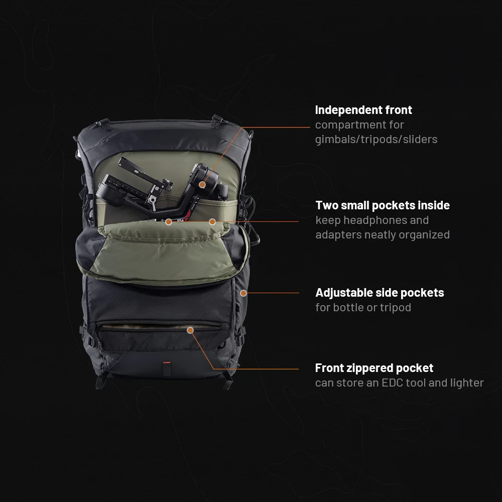 The PGYTECH OnePro Focux Backpack 25L provides secure storage for your photography equipment and enough space for up to 2 cameras and 9 lenses.