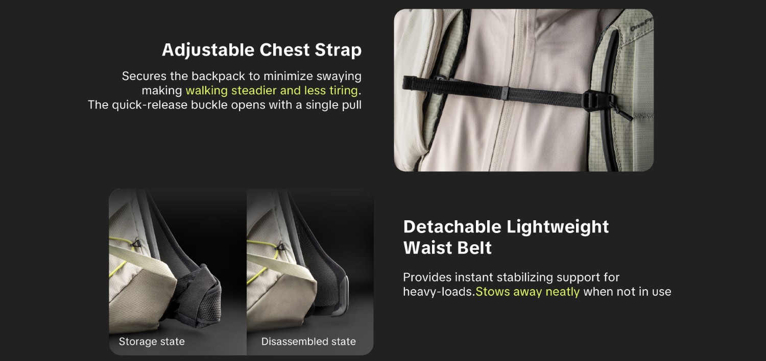 The OnePro Ultralight is a lightweight photography backpack designed for outdoor creators, featuring a professional-grade carrying system.