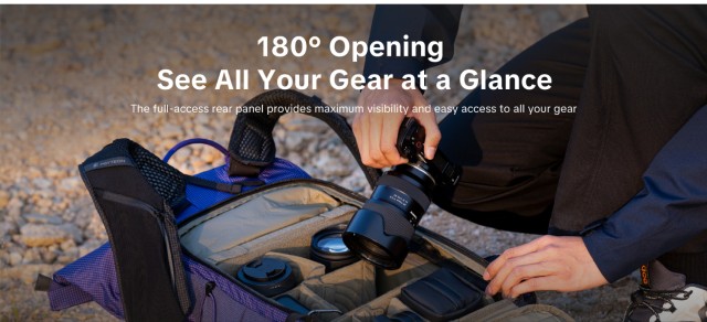 The innovative side quick-access panel, a key differentiator from other lightweight photo backpacks, allows you to retrieve your camera in seconds without taking off the backpack.