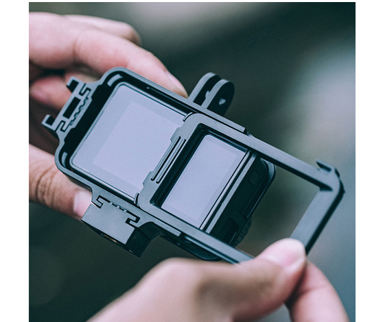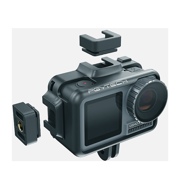 The PGYTECH Camera Cage for Osmo Action offers a form-fitting design with multiple accessory mounts, allowing you to attach microphones, lights, and grips while maintaining full access to the camera’s screen and controls.