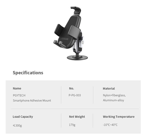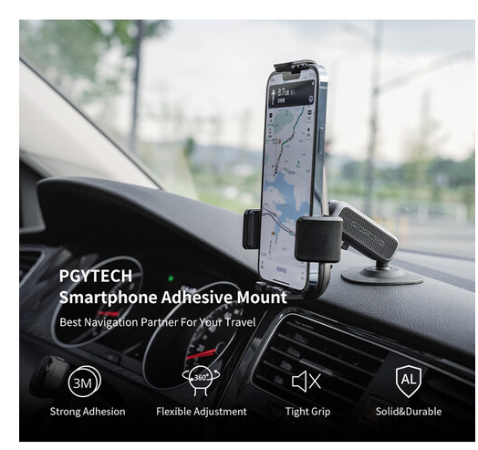 The PGYTECH P-PG-003 Full Wrap Smartphone Adhesive Mount with Magic Arm is a durable and versatile mounting solution designed for hands-free smartphone use in vehicles, workspaces, or any flat, clean surface. Using weatherproof 3M VHB adhesive, the mount attaches firmly to dashboards, desks, or panels, providing long-lasting stability even in demanding conditions.
