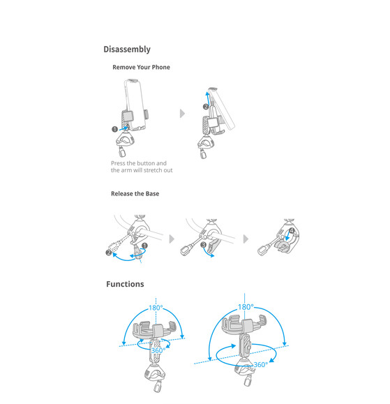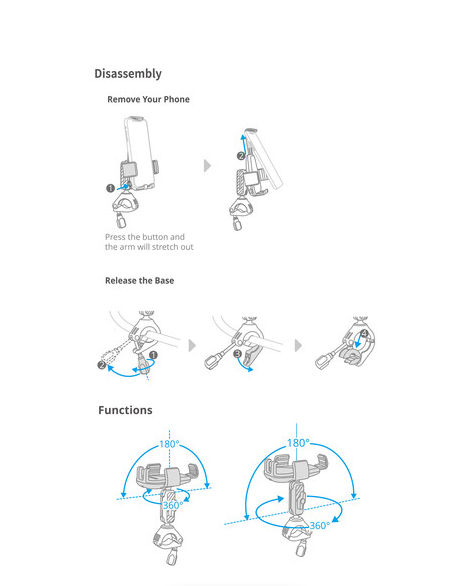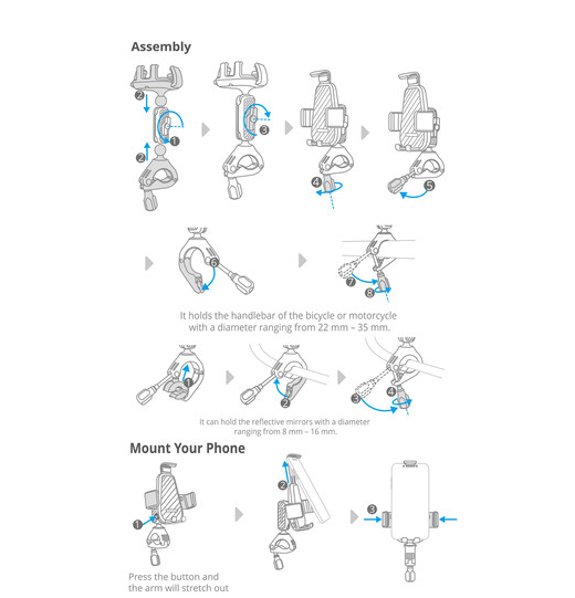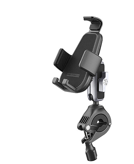 Securely mounts smartphones to bicycle and motorcycle handlebars or side mirror support arms